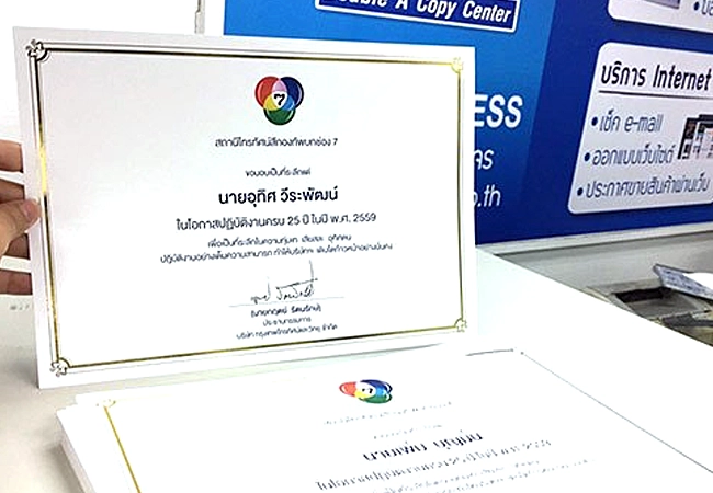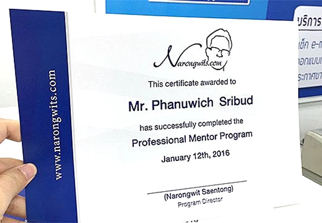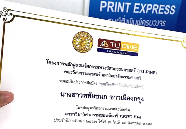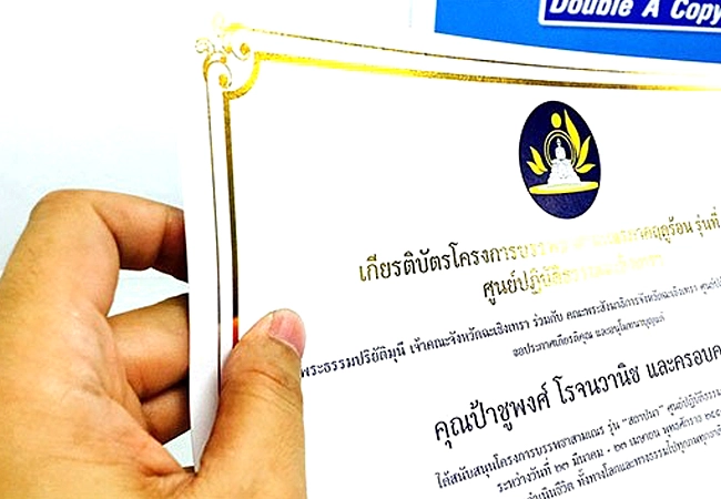 รับพิมพ์ใบประกาศ ใบประกาศนียบัตร ผู้ผ่านการฝึกอบรมหลักสูตรต่างๆ หรือใบประกาศสำหรับผู้เข้าร่วมการอบรม หรือการแข่งขันต่างๆ ใบประกาศนียบัตรสำหรับพนักงาน หรือทีมงานเพื่อเป็นเกียรติให้บุคลากรในองค์ของคุณ ใบรับรอง ใบรับประกันต่างๆ พิมพ์ด้วยระบบ Digital Print ขนาด A5-A4 พิมพ์ลงกระดาษการ์ดขาว หนา 240 แกรม สามารถเพิ่ม Option กรอบทอง, กรอบเงิน เพิ่มความสวยงามให้ดูน่าเชื่อถือได้ครับ