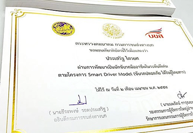 พิมพ์ใบ Cer สำหรับผู้เข้าอบรมหลักสูตร ใบเซอร์สำหรับ Training หลังสูตร ต่างๆ พิมพ์พร้อมรันชื่อผู้ผ่านการอบรม สามารถพิมพ์ได้ A5 – A4 ต้อง Concept การใช้งานครับ สามารถเลือก Option การพิมพ์ เช่น พิมพ์สี 4 สี หรือ พิมพ์สี + กรอบทอง, กรอบเงิน เพิ่มความ สวยงาม ให้ใบประกาศของบริษัทลูกค้าได้ครับ หากสนใจสอบถามแอดมินได้เลย เรายินดีให้บริการ และแนะนำ ให้เหมาะกับ Concept การใช้งานครับ